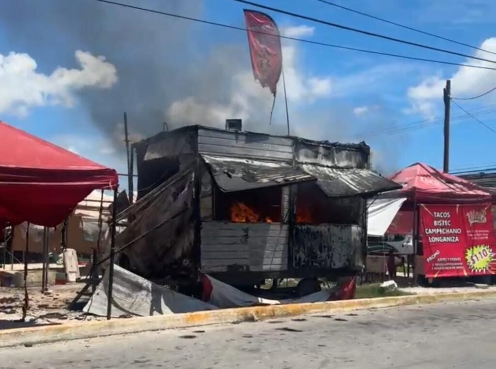 Cancún.- Un puesto de comida se incendió esta tarde en la esquina de la avenida 135 con Rodín (continuación de Santiago de Compostela), frente al fraccionamiento Villas del Arte. Se teme que pueda ser provocado. Una gran columna de humo llamó la atención de vecinos del lugar, que llamaron al 911. Bomberos arribaron y combatieron […]
