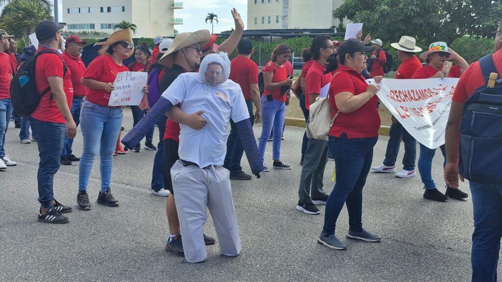 Maestros inconformes marchan por la Zona Hotelera de Cancún