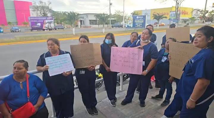 Protesta personal de limpieza del Hospital del ISSSTE en Chetumal por falta de prestaciones
