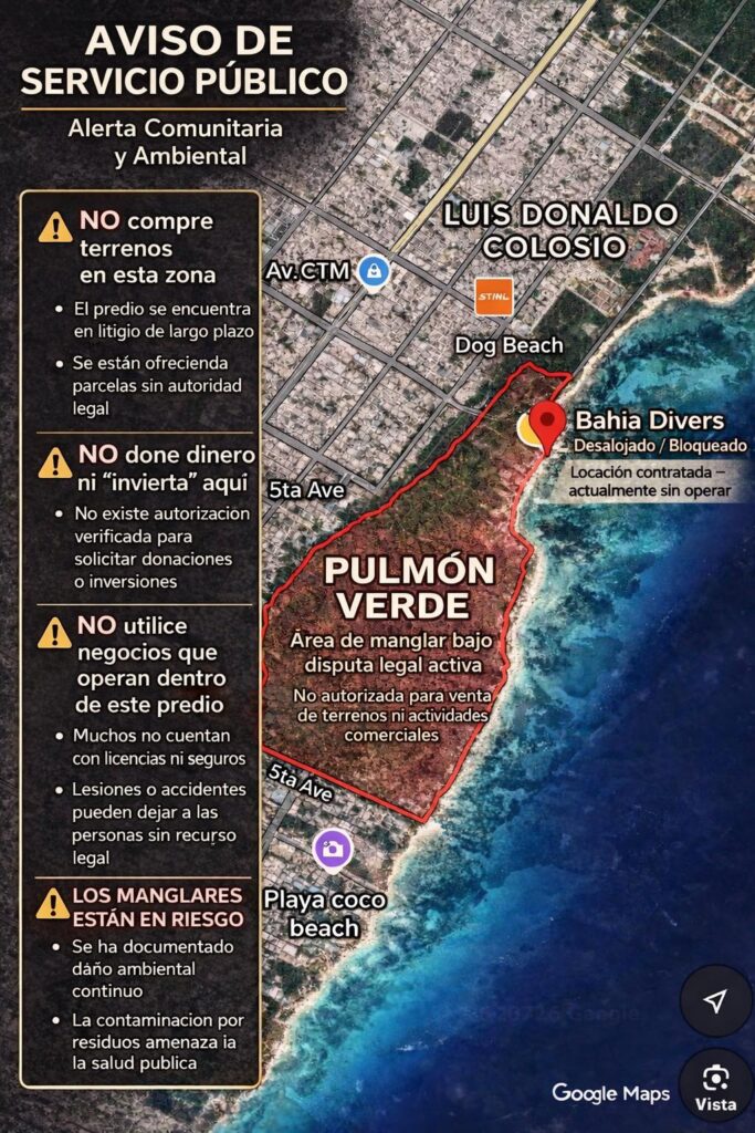 Playa del Carmen.- La empresa Bahía Divers denunció mediante un comunicado el hostigamiento y las agresiones presuntamente perpetradas por la asociación “Pulmón Verde”, como parte del pleito que mantiene por la posesión del predio costero “Chenzubul”, ubicado entre Coco Beach y la playa 72. En su escrito, la empresa indicó que ellos se trasladaron “por […]
