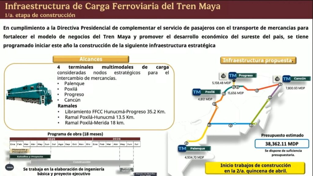 El Gobierno Federal en total tiene presupuestado 157 mil millones de pesos para obras ferroviarias, incluido el ramal de Progreso, pero además las anunciadas líneas férreas desde Ciudad de México hacia el norte del país.