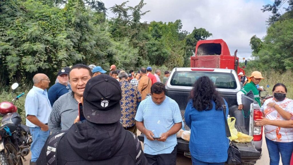 Las cerca de 70 personas llevaron un camión al camino de acceso y allí lo estacionaron, para impedir el paso de los vehículos recolectores de basura, hacia el relleno sanitario, que fue construido en tierras de este ejido.