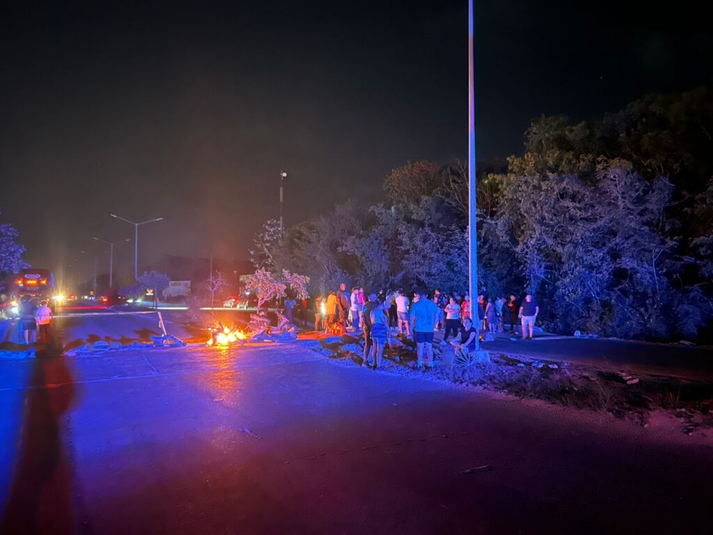 Bloquean vecinos de Villas del Sol carretera a El Tintal, por apagón