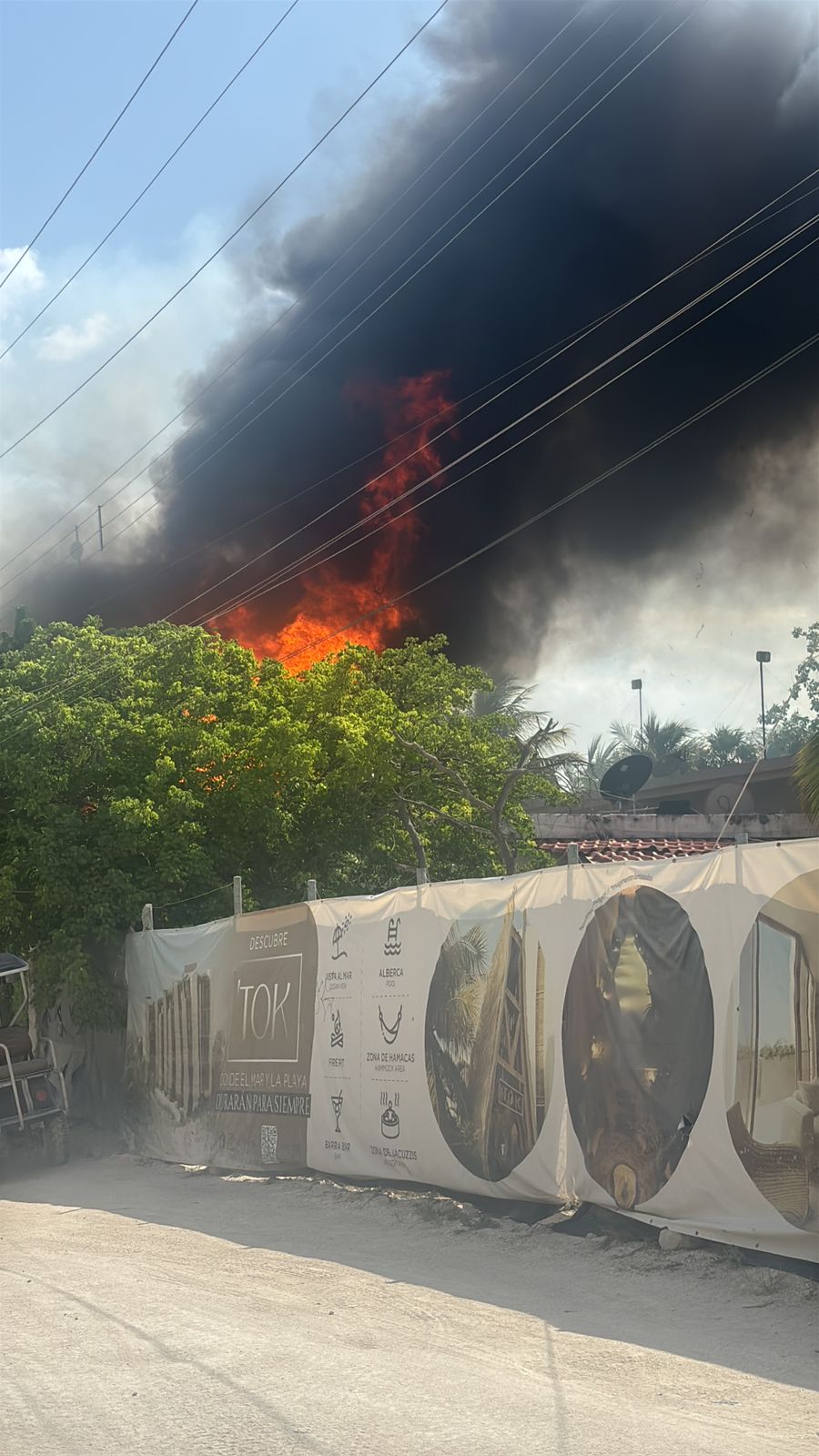 Fuerte incendio consume un hotel, dos restaurantes y una casa en #Holbox . Ciudadanos se esfuerzan en contener las llamas, ante la falta de una estación de bomberos, pese a que ésta fue prometida hace ya tres años, después del último gran incendio. Un cortocircuito en el restaurante “Mr. Happy”, en la calle Damero, fue lo que inició este siniestro, alimentado por los fuertes vientos de este día.