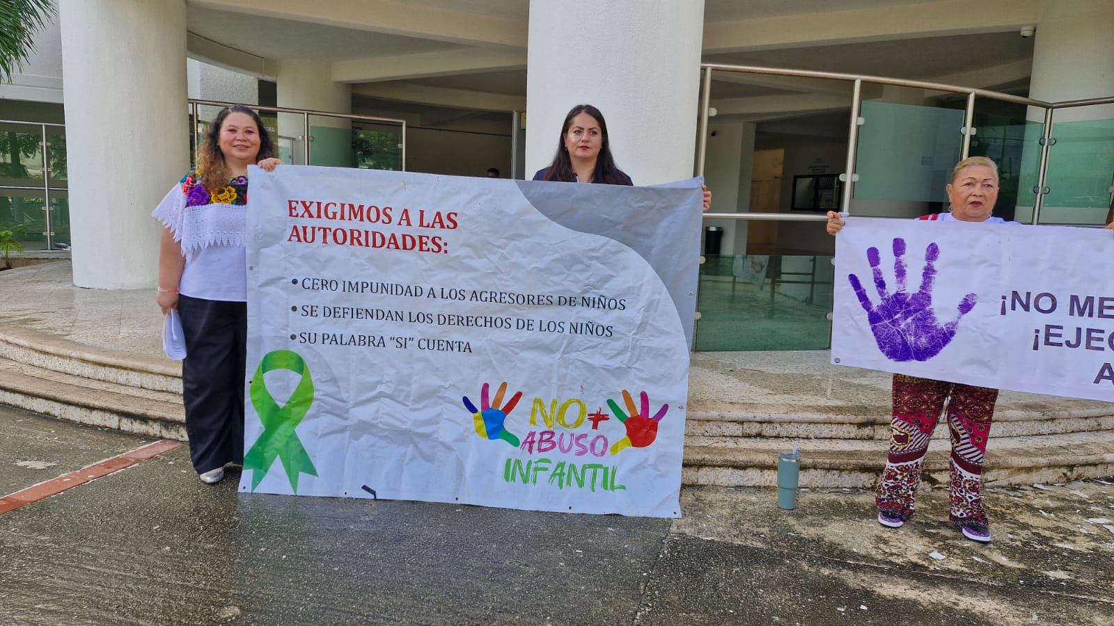 Cancún.- Integrantes del Frente Feminista Quintana Roo protestaron este día frente a las oficinas del Poder Judicial de Quintana Roo, por su negación de justicia, al pasar más de 11 meses sin que fijen audiencia en torno a la denuncia por violencia familiar en contra de la diputada local de Morena, Paola Moreno.