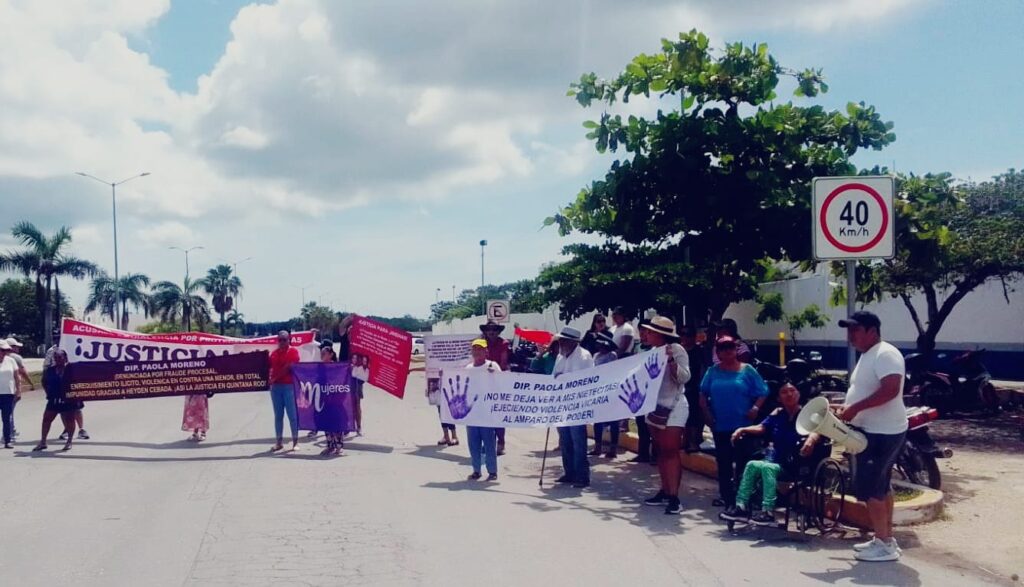Esta manifestación, que incluyó a activistas quienes denunciaron las irregularidades cometidas en el Poder Judicial, en especial en temas de custodia, se trasladó de los tribunales a la carretera federal 307, en donde concientizaron a los ciudadanos y exhortaron la intervención de la autoridad para poner fin a este uso personal de la procuración de justicia.