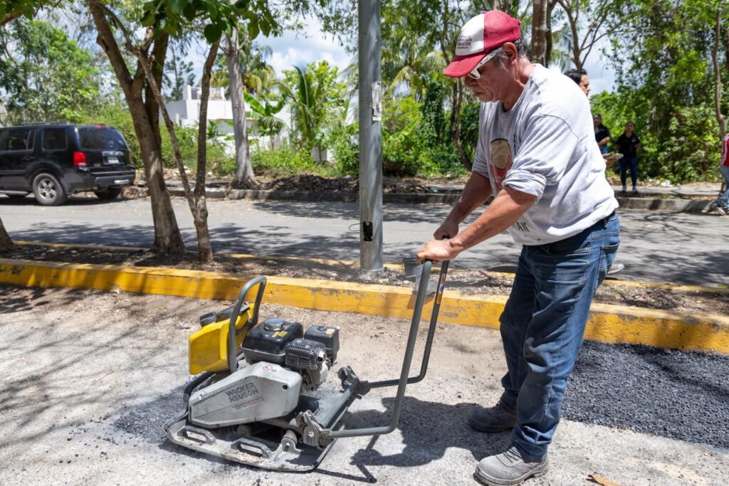 Además, se realizaron acciones de saneamiento ambiental con la instalación de un punto de acopio en la avenida Hunab Ku y calle Ik, así como trabajos de bacheo sobre la avenida Hunab Ku, entre calle Balam y calle Tepich.