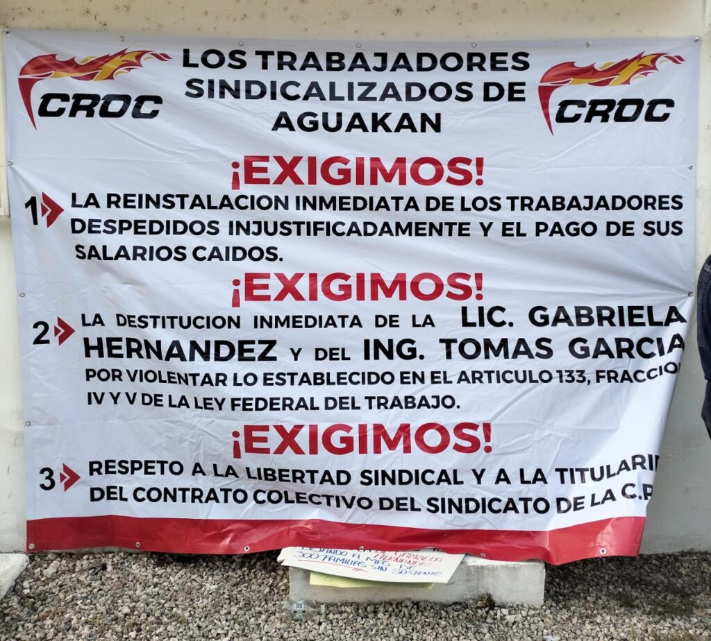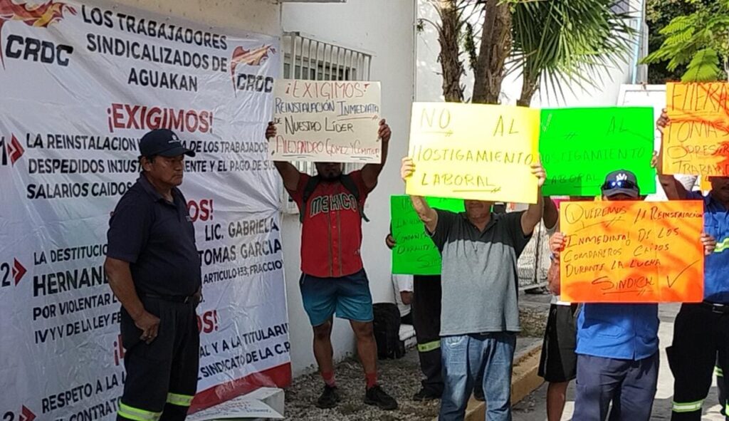 Entre los despedidos está Alejandro Gómez López, secretario general del Sindicato de Aguakan, al igual que el resto del comité directivo, quienes exigen ser restituidos, toda vez que, después de cinco años de lucha, cuentan con un fallo de un tribunal colegiado, en el que confirma que los trabajadores eligieron a la CROC para que lleve su contrato colectivo.