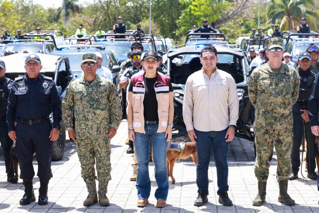 Playa del Carmen, 31 de marzo de 2026.— La presidenta municipal Estefanía Mercado dio el banderazo de inicio del Operativo Vacacional “Semana Santa 2026”, desde la explanada del nuevo Palacio Municipal, con la participación de más de 500 elementos de instituciones municipales, estatales y federales, con el objetivo de salvaguardar la seguridad de habitantes y visitantes durante la temporada.