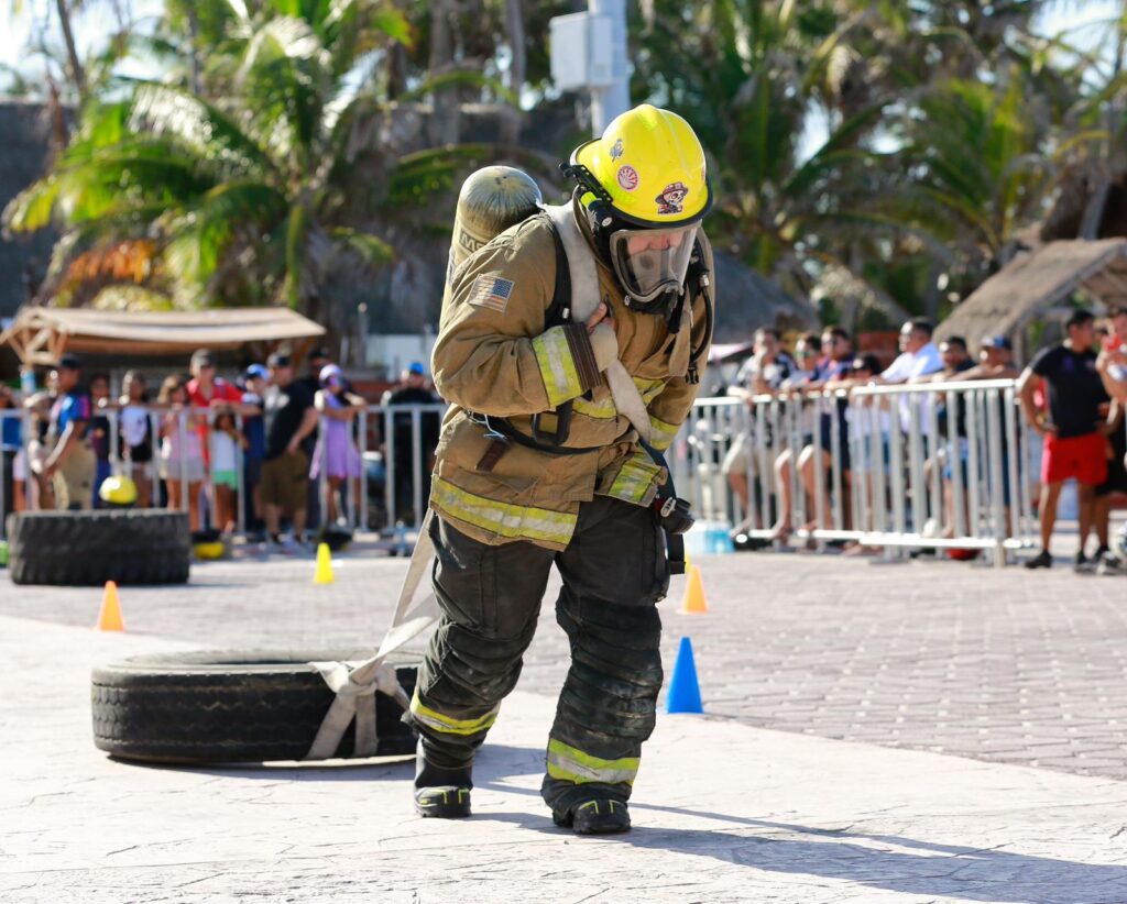 El duelo amistoso se realizó en el Malecón Oriente, donde bomberos y atletas de CrossFit enfrentaron un exigente circuito de pruebas físicas con una característica especial: todos realizaron los retos portando traje completo de bombero, lo que incrementó significativamente el nivel de dificultad.