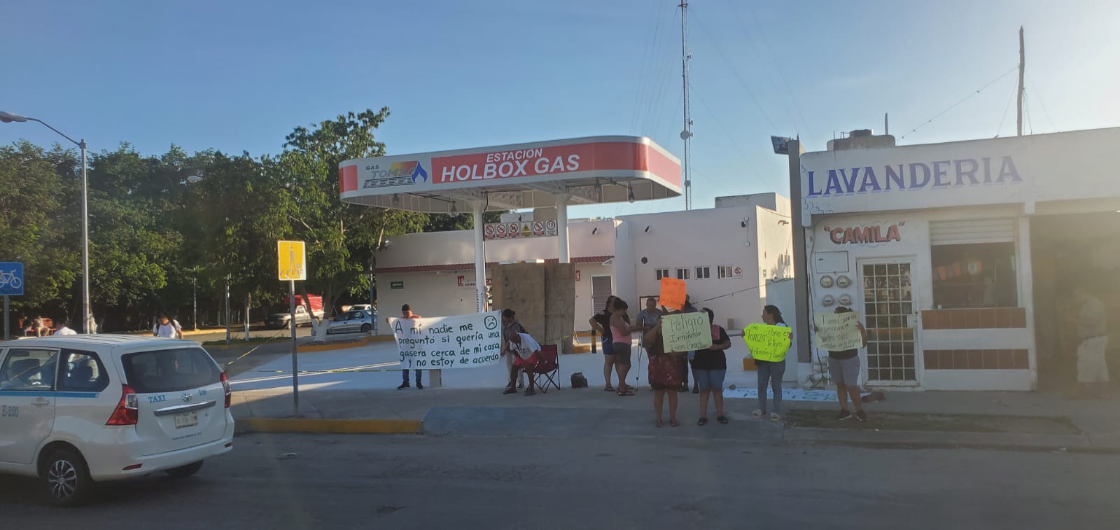 Vecinos de esta zona, en el primer parque de Villas del Sol, denunciaron que esta estación fue construida en apenas tres semanas, oculta detrás de madera, sin que ellos pudieran enterarse u opinar sobre el riesgo que presenta tener una gasera junto a sus hogares.