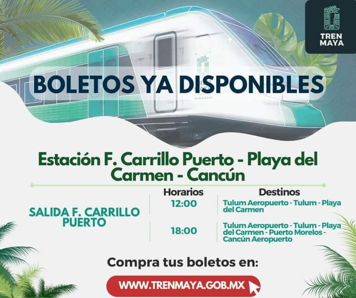 Este ferrocarril tendrá dos salidas desde Felipe Carrillo Puerto, a partir de mañana viernes, al mediodía y a las seis de la tarde, de acuerdo a información difundida por el Tren Maya. Hasta ahora, es el punto final del Tramo 6 de este proyecto, que continúa avanzando hacia el sur de Quintana Roo.