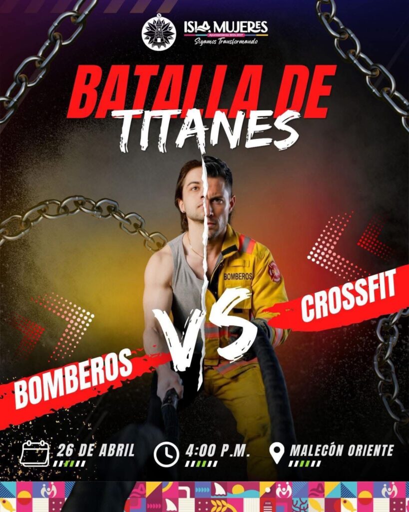 Isla Mujeres, 23 de abril de 2026.- El ayuntamiento de Isla Mujeres, que encabeza la presidenta municipal, Atenea Gómez Ricalde, invita a las familias isleñas y a los visitantes a disfrutar de la “Batalla de Titanes: Bomberos vs CrossFit”, una competencia que pondrá a prueba la fuerza, resistencia y disciplina de sus participantes en un ambiente de sana convivencia.
