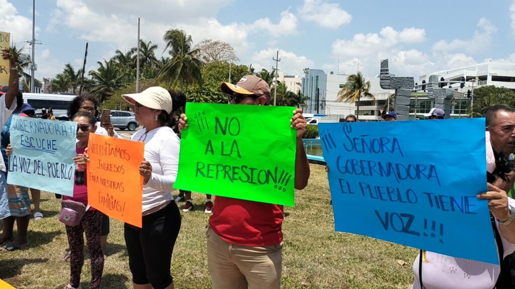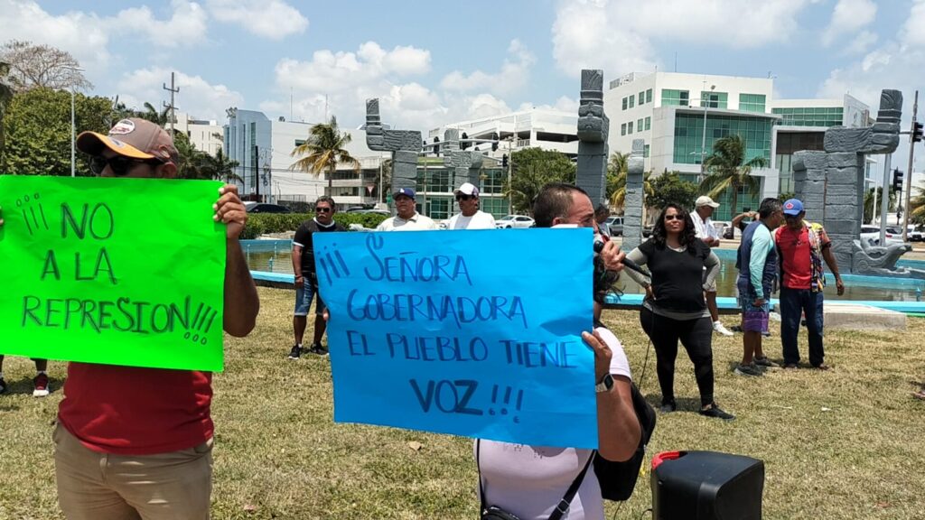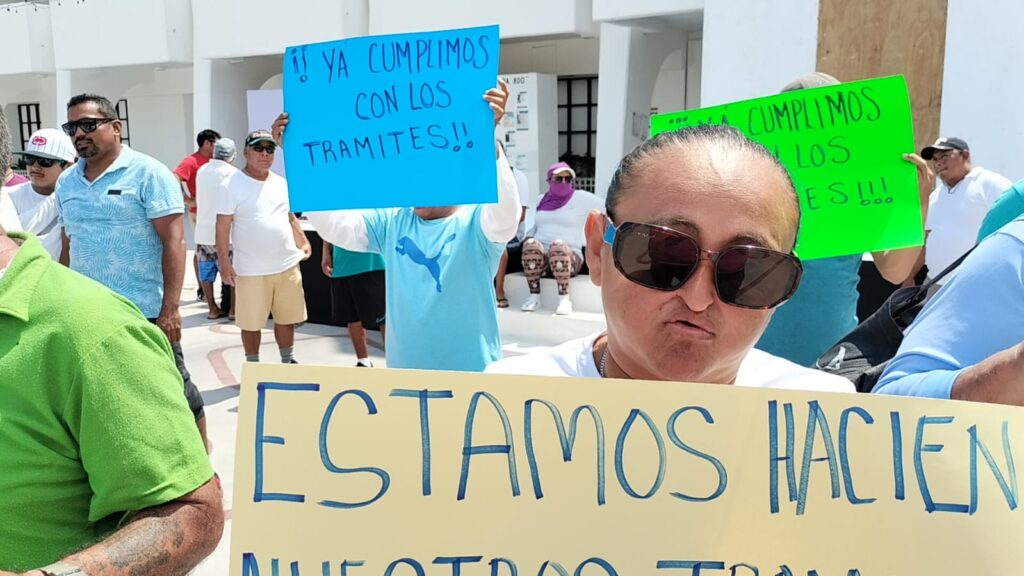 Los inconformes se instalaron frente al Palacio Municipal, en donde alzaron cartulinas en las que denuncia los abusos de la Guardia Nacional, aseveran que ya han cumplido con todos los trámites y solicitan la intervención de distintas autoridades, como la presidenta municipal y la gobernadora.