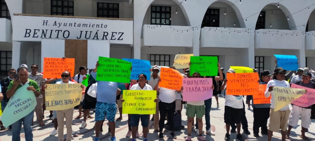 Varios de los comerciantes presentes señalaron que aunque cuentan con estos documentos en trámite, la Guardia Nacional no los da por válidos, y los detiene, decomisándole su mercancía y entregándolos a la Policía Turística, quienes les aplican multas de hasta 2 mil 800 pesos
