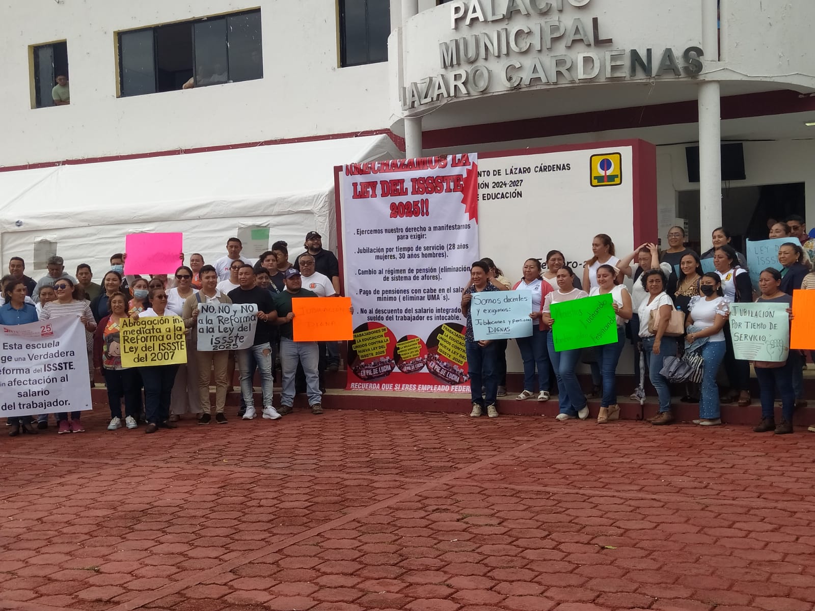 Kantunilkín.- Cientos de maestros en los municipios de Lázaro Cárdenas y de José María Morelos marcharon por la calles de sus ciudades para expresar su desacuerdo con la reforma a la Ley del ISSSTE, sin que estas manifestaciones estuvieran avaladas por sus sindicatos.