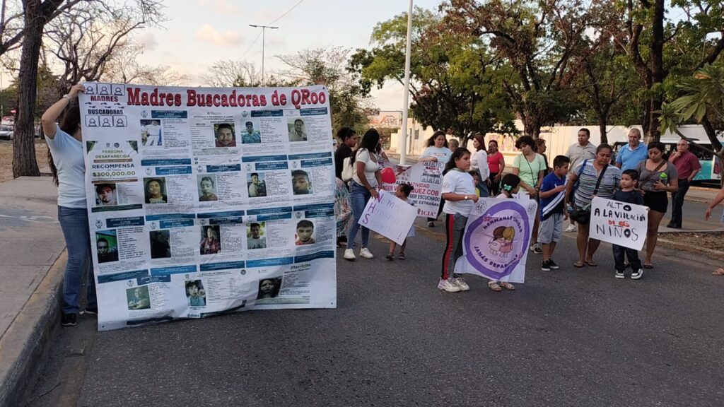 El grupo de menores, acompañadas de varias mujeres del asociaciones “Hermanas Unidas Jamás Separadas” y de las “Madres Buscadoras de Quintana Roo” fueron guiados desde el Centro de Convivencia Familiar (Cecofam) ubicado en la Supermanzana 2, hasta los Juzgados Familiares, ubicados en la avenida Tulum. Varios llevaban globos, en tanto que otros llevaban cartulinas con mensajes alusivos a su causa.