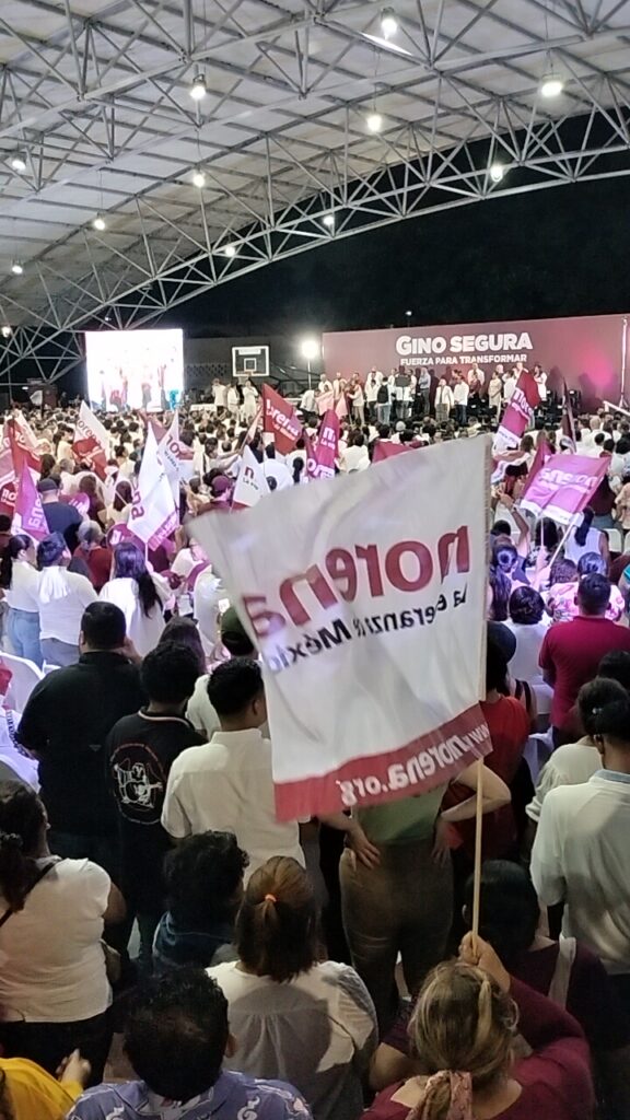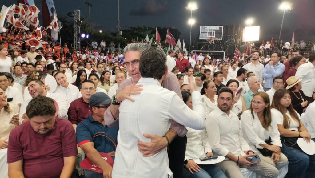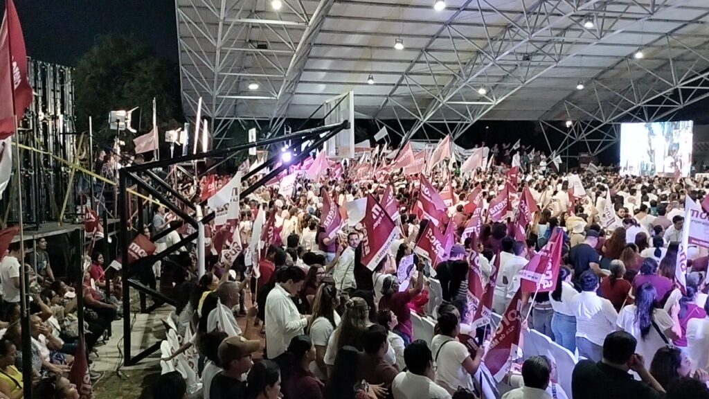Junto a ellos, miles de invitados, muchos con banderas de Morena y camisas guindas, organizados por grupos, lo que sirvió como una demostración de la capacidad de movilización en favor del senador.
