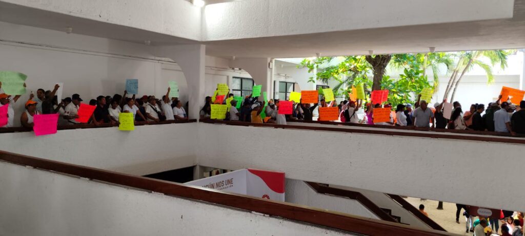 Los inconformes ingresaron a la sede del Ayuntamiento de Benito Juárez y subieron las escaleras para prácticamente apoderarse de los pasillos del segundo nivel. Allí, entre gritos, trataban de expresar sus exigencias.
