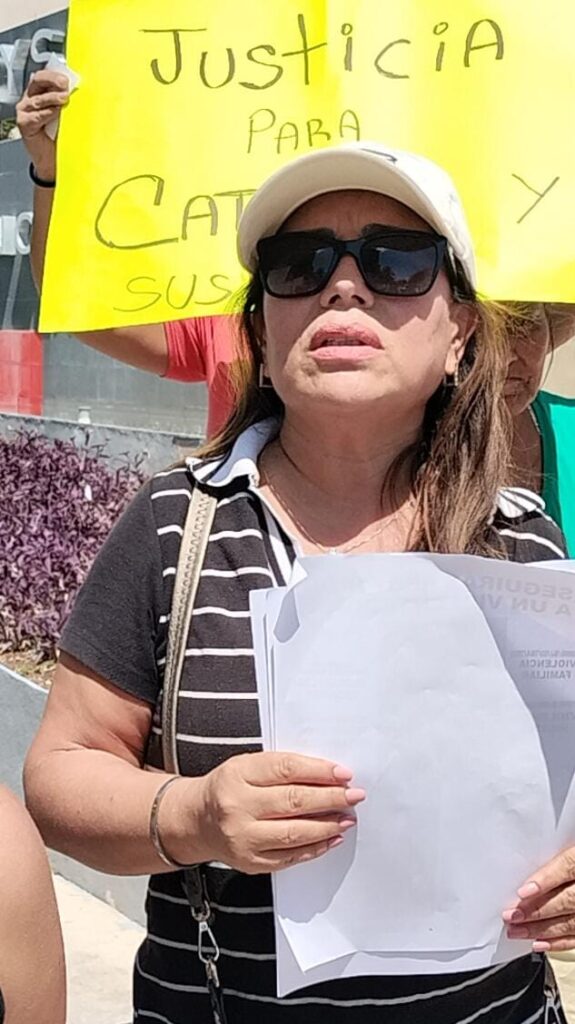 Encabezó esta manifestación Catalina Castro Meneces, ex pareja de Sergio León Cervantes, quien lleva ya tres años de lucha tratando de conseguir la custodia de sus hijos, misma que le fue negada, junto con todos sus bienes, por un juez que asegura que actuó en contubernio con este empresario, quien es amigo de la magistrada Verónica Acacio.