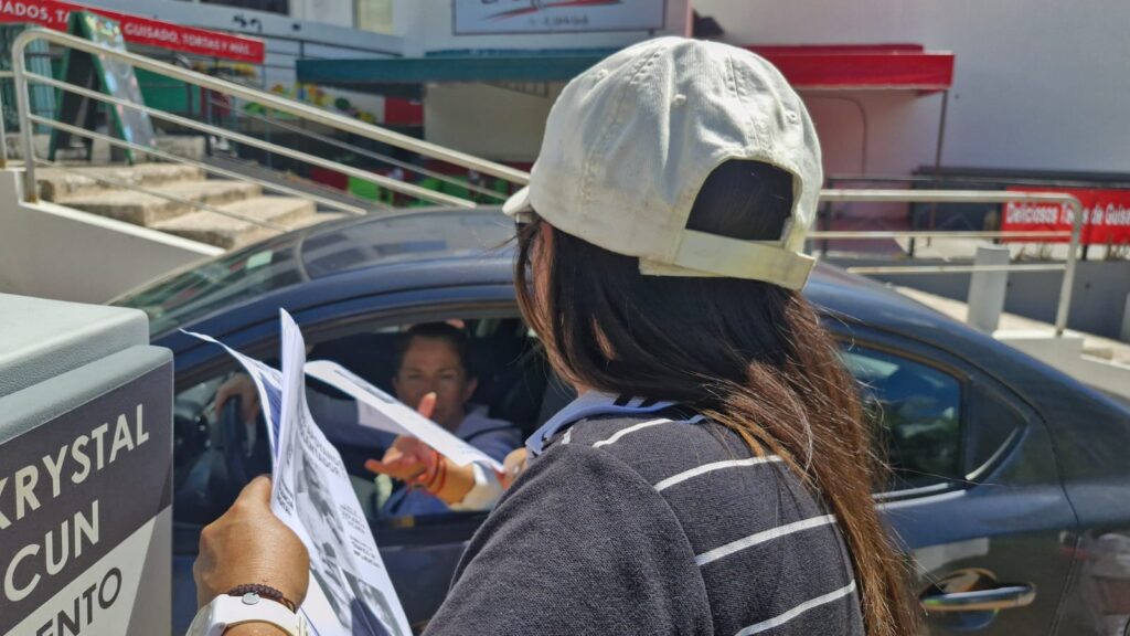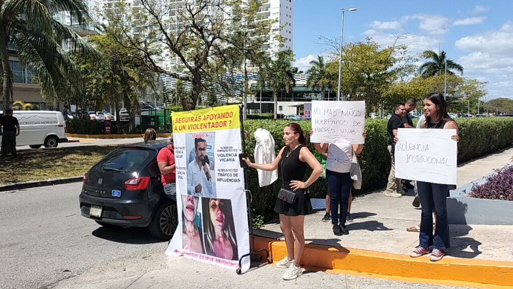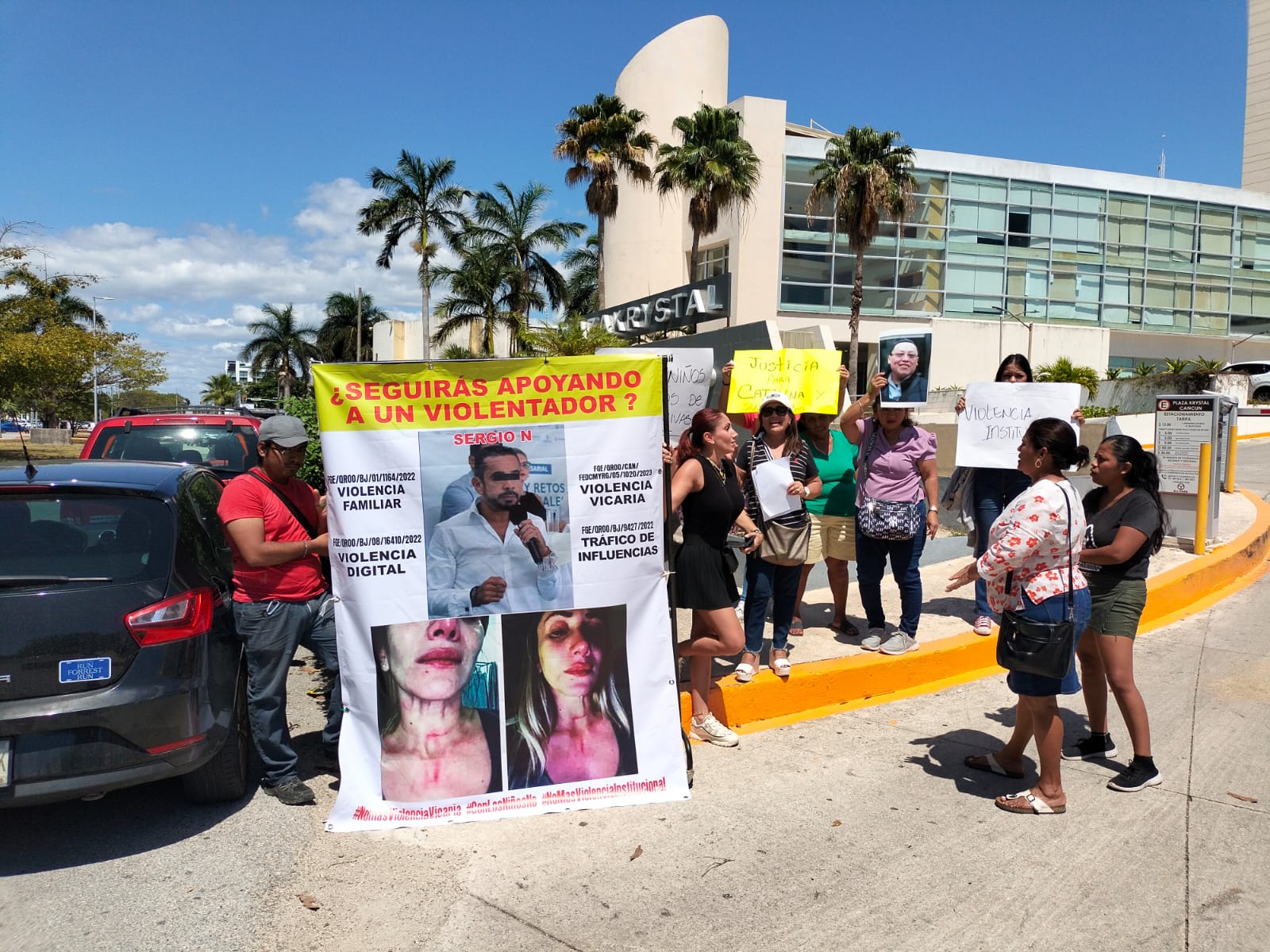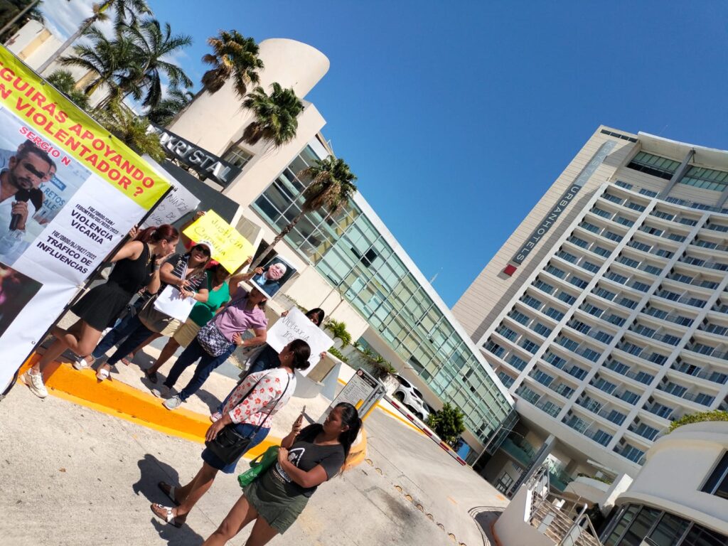 Cancún.- Un grupo de ciudadanos se manifestó de forma pacífica afuera del hotel Krystal Urban, en la avenida Bonampak con Sayil, para expresar su rechazo a la reunión privada realizada por la agrupación “Empresarios por Quintana Roo”, que encabeza Sergio León Cervantes, con aspirantes a magistrados y jueces, al considerar que este personaje, al que acusan de ser agresor, ya busca tejer redes de influyentismos.
