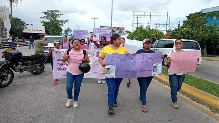 Los inconformes marcharon desde el Museo Maya hasta el Congreso del Estado, con la consigna “Justicia para Dulce”, y con gritos de “ni una más”, también reclamaron la “ineptitud” de la Fiscalía General del Estado, que permite que continúen estos feminicidios.