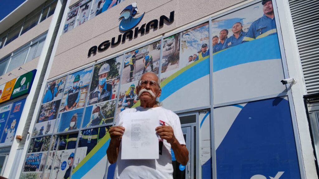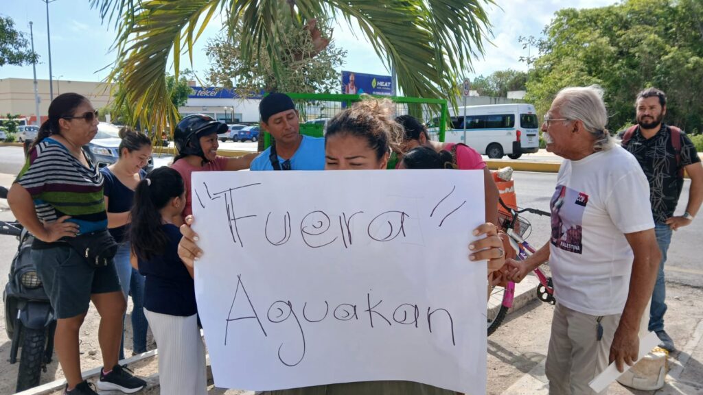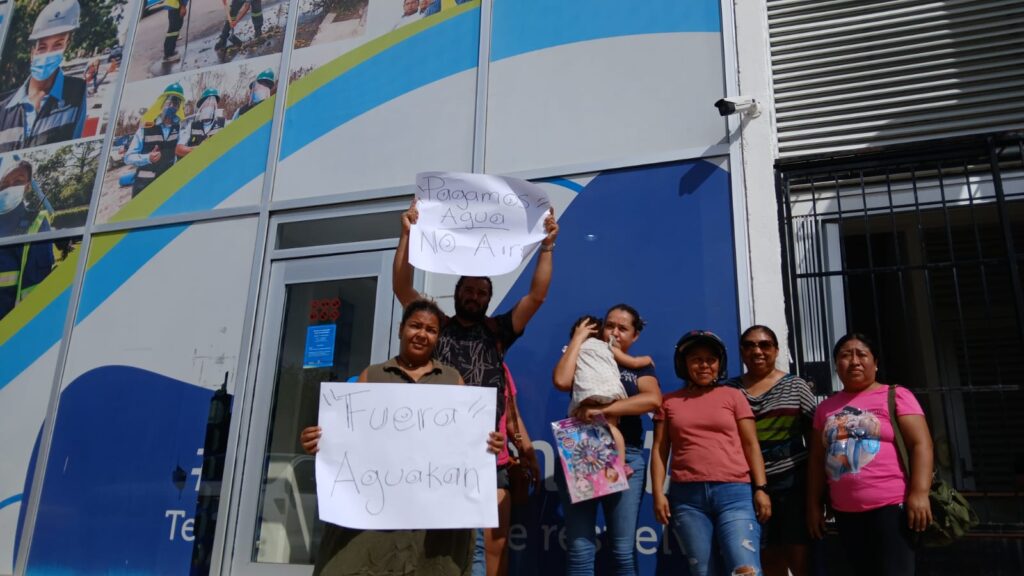 Entre 10 y 15 personas de ambas colonias acudieron al lugar, en la avenida 125, en respuesta a una convocatoria lanzada en línea, y escribieron cartulinas con mensajes en contra de esta empresa, como “Pagamos agua, no aire” y “Fuera Aguakan”.