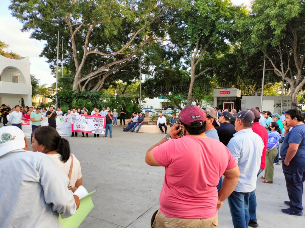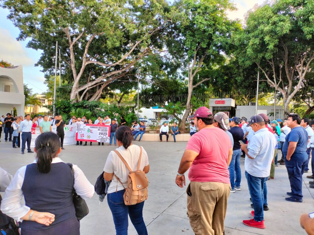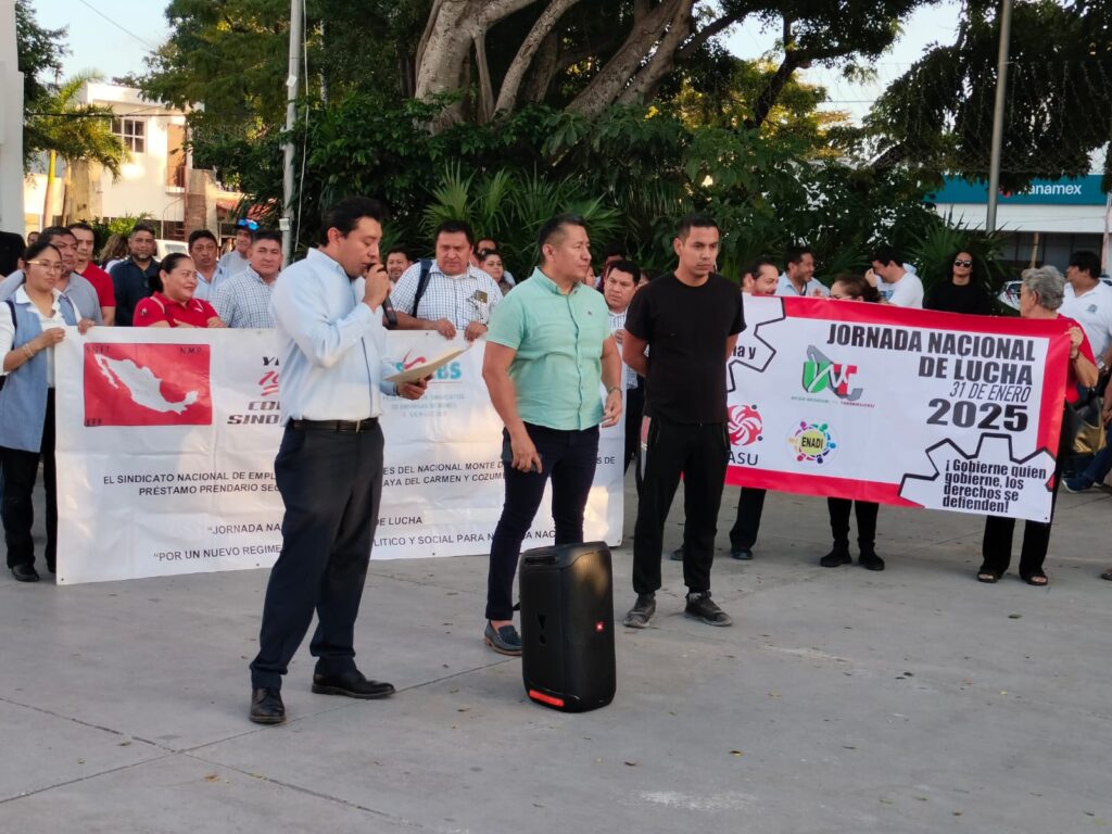 Cancún.- Diversos sindicatos agrupados en la Unión Nacional de Todos los Trabajadores (UNT), como el Sindicato de Telefonistas y el Sindicato de Monte de Piedad, realizaron un mitin esta tarde frente al Palacio Municipal, para expresar una postura de oposición a la nueva Ley de Infonavit, además de denunciar diversas problemática que afectan a la clase trabajadora.