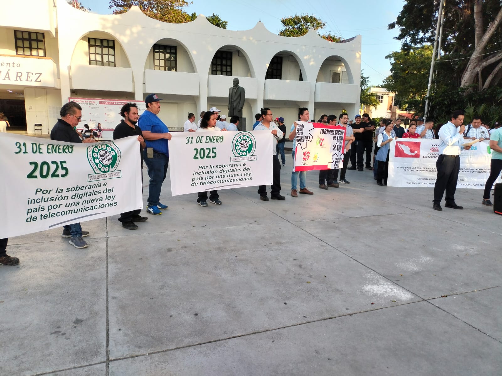 Cancún.- Diversos sindicatos agrupados en la Unión Nacional de Todos los Trabajadores (UNT), como el Sindicato de Telefonistas y el Sindicato de Monte de Piedad, realizaron un mitin esta tarde frente al Palacio Municipal, para expresar una postura de oposición a la nueva Ley de Infonavit, además de denunciar diversas problemática que afectan a la clase trabajadora.